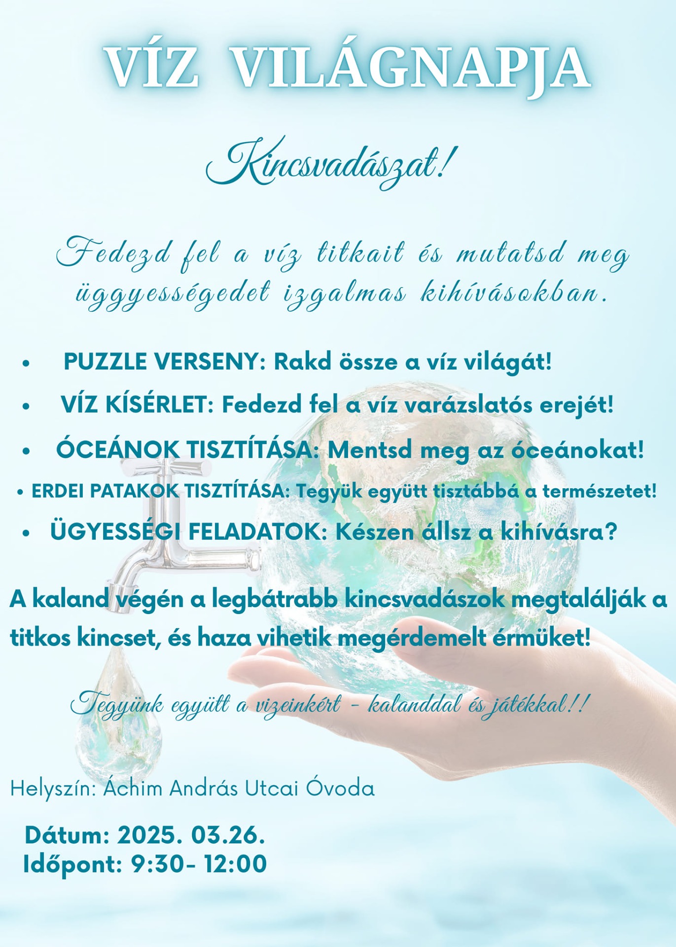 Az ENSZ kezdeményezésére 1993 óta hívják fel a figyelmet arra, hogy a tisztított, iható víz nem magától értetődő erőforrás, és világszerte emberek milliói szenvednek vízhiánytól.